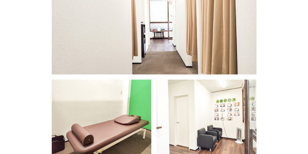 店内は清潔感あふれる心地よい空間です。各施術室は壁とカーテンで仕切られていますので落ち着いて施術を受けられるとご好評いただいています。
