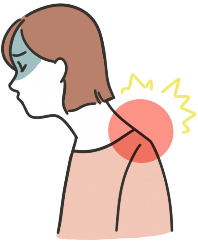 - 首や肩を動かすと、突っ張った感じや詰まった感じがある